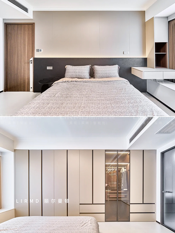 内嵌电视墙+隐形收纳柜,功能颜值双在线,躺下就是五星酒店体验