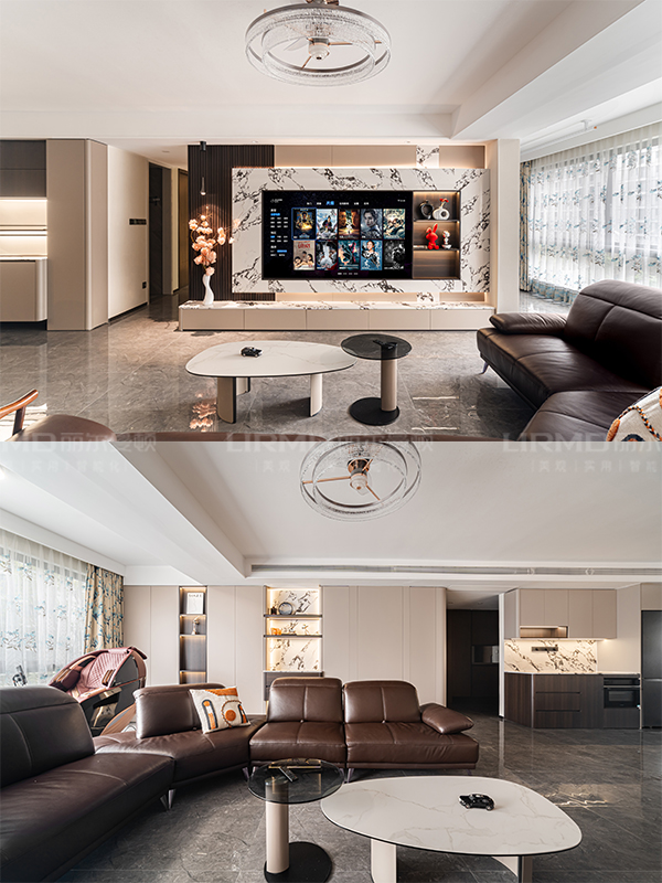 左边吊灯端景氛围感直接拉满,追剧时连背景都像在看杂志大片