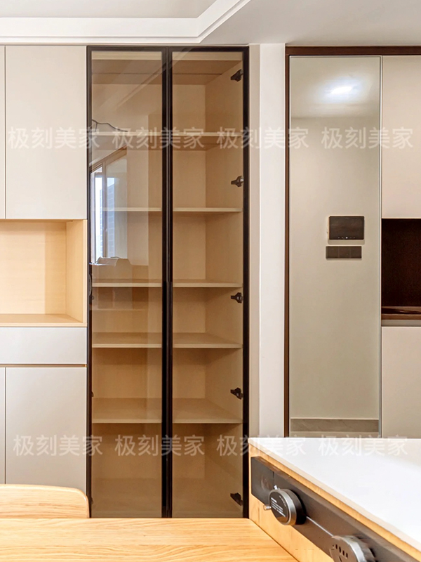 运用玻璃柜门和木质柜门相结合的设计,增加层次感