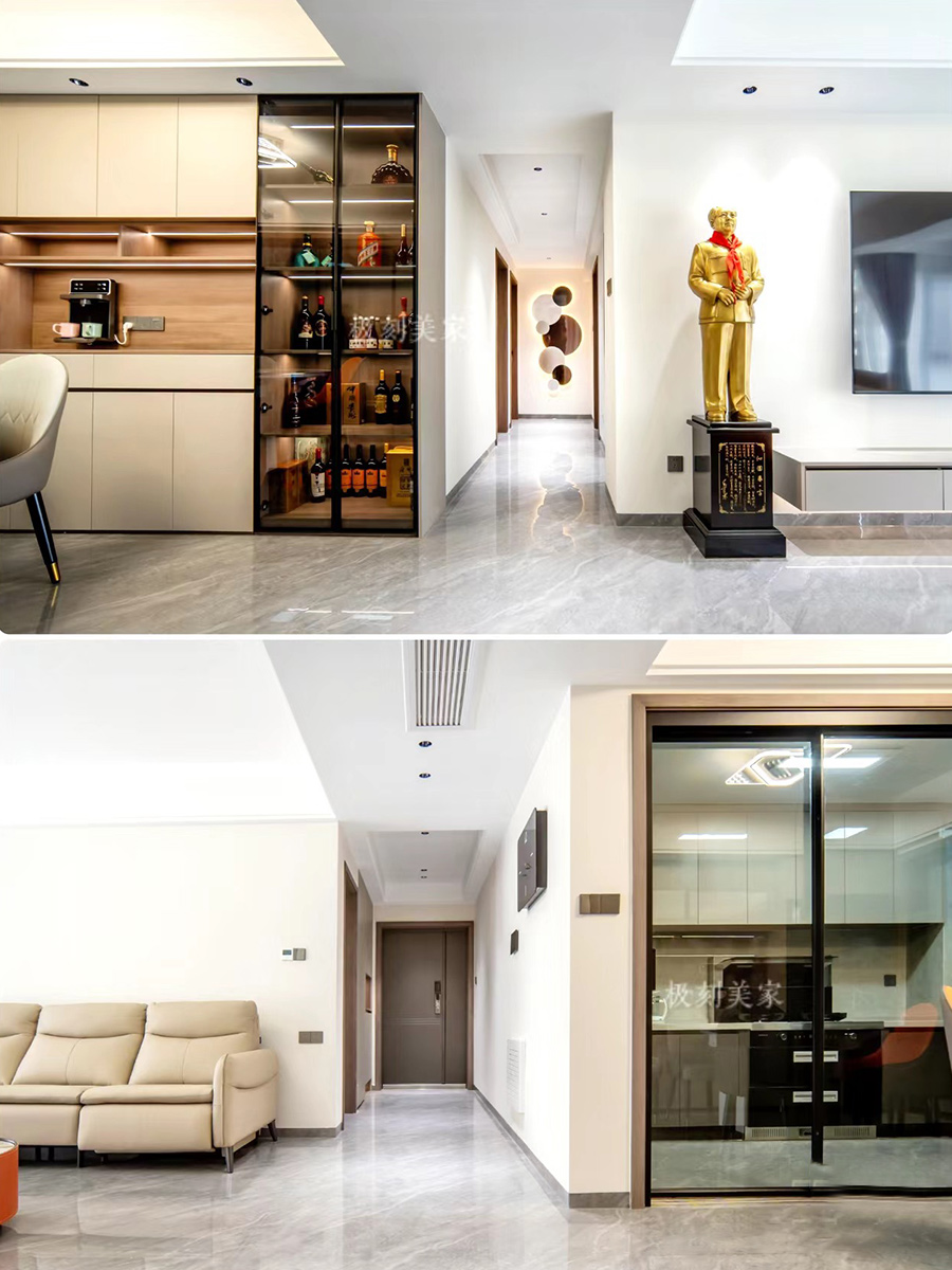 餐边柜采用零嵌入式,整个冰箱柜和餐边柜保持在同一平面,使得整体感增强