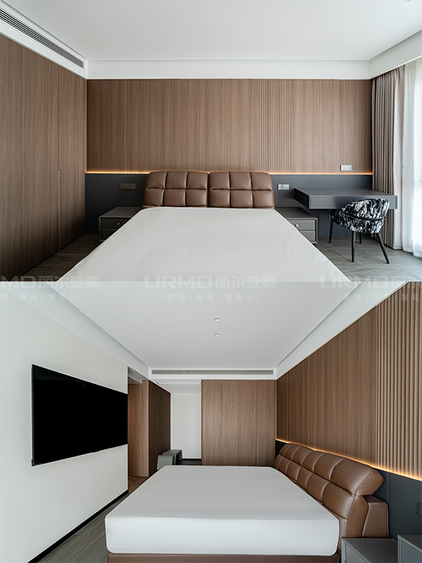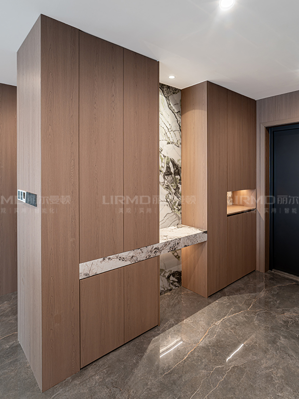 主题以轻奢暖色调为主,轻奢岩板结合墙板,打造现代舒适不过时的家