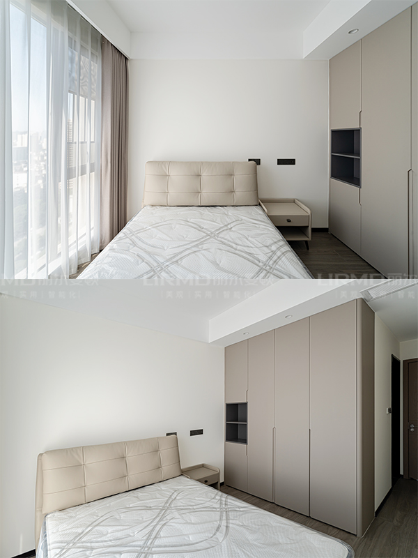 房间的衣柜进门处做圆弧角搭配无障碍设计,使用方便舒适