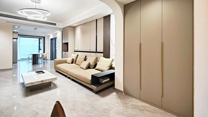 坐标:长沙长房领袖时代风格:现代意式风面积:142平造价:17W【入户柜】定制:烟熏尤加利+..